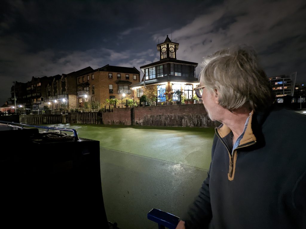 Set off at 9:30. We found a lucky mooring spot at Stonebridge 12:30-13:30, and took the Limehouse Cut.We had decided to go to Limehouse after phoning the Basin – very confusing info but upshot was we stayed on the Wall for free – grabbed last space at 17:00 as the St Pancras C.C were there lining up to go up the Thames for Light Festival. The Grapes was an interesing pub ovelooking the river.